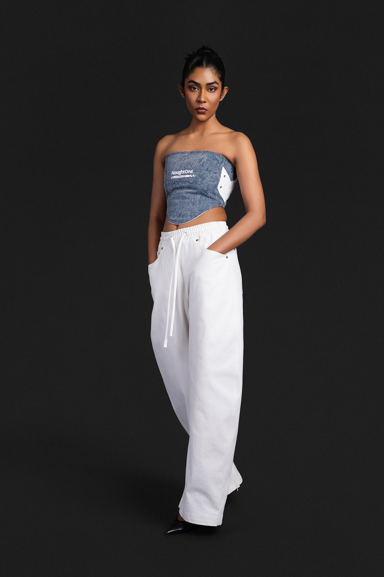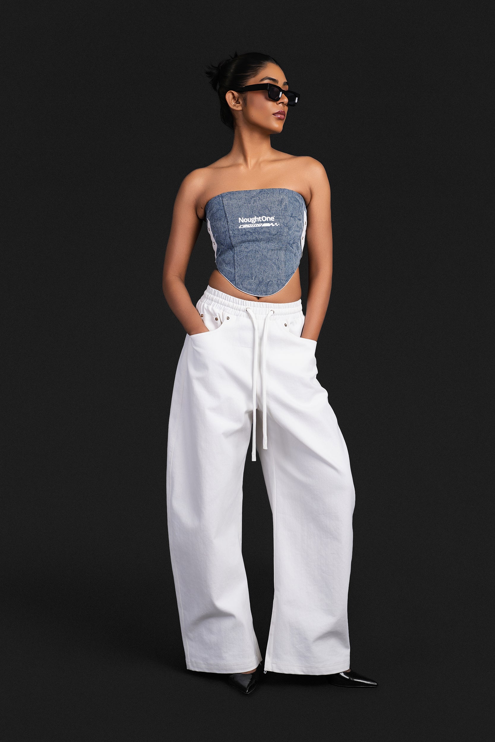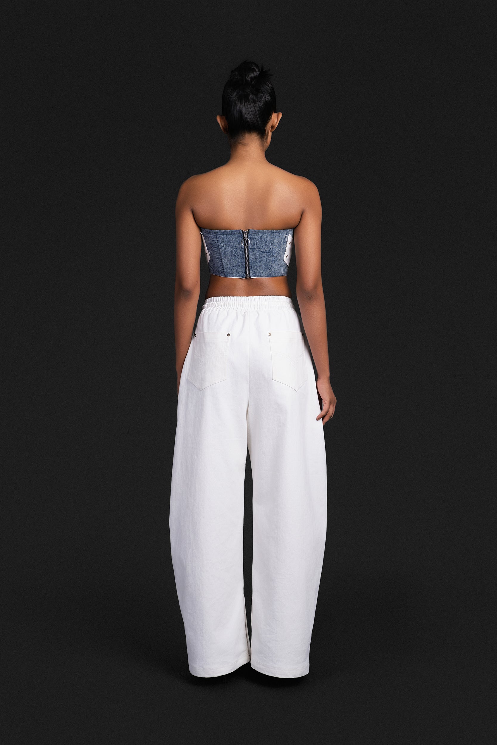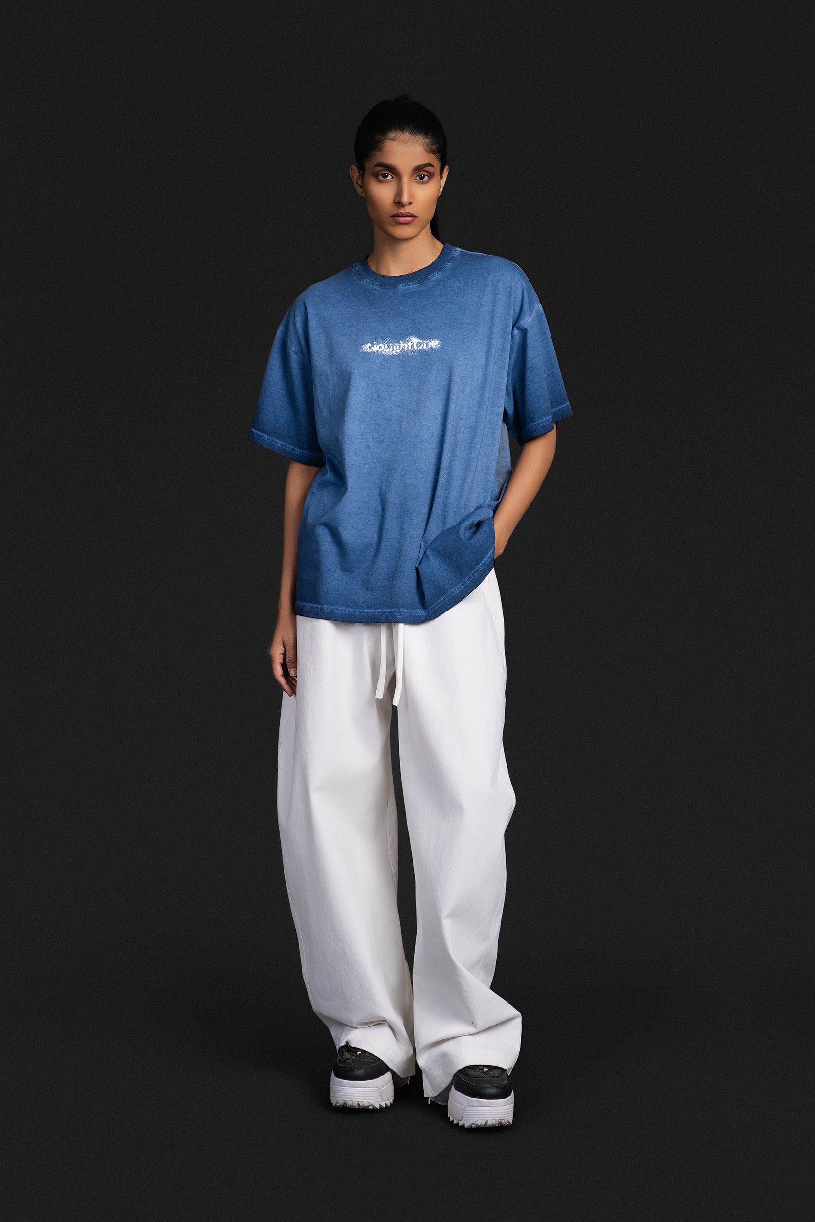 A 100% cotton-denim based joggers that features an anti-fit and elongated length.